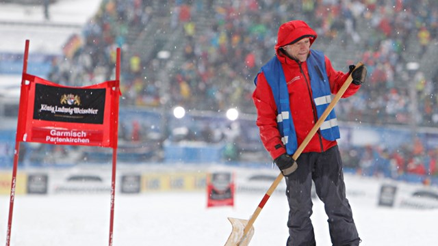 Однако, и эта мера не помогла. В Гармиш тоже пришел дождь, температура поднялась до плюс четырех по Цельсию, а туман усилился. Видимость на трассе практически полностью исчезла. Гонку пришлось отменить.