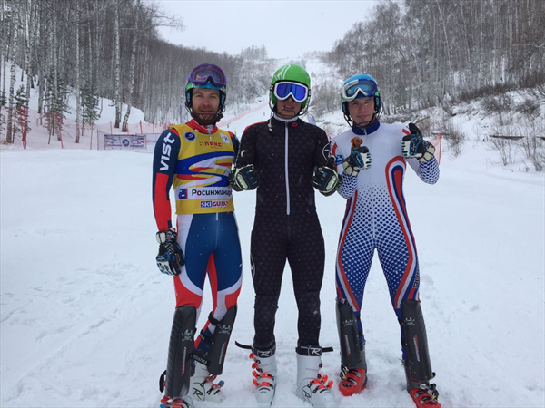 Вчера же второй гонкой в слаломе завершили соревнования стартового этапа Кубка России в Абзаково мужчины. По сумме времени на двух трассах победу одержал опытный сахалинский горнолыжник Дмитрий Ульянов, опередивший двух представителей команды Свердловской области - Максима Стукова и Андрея Ушакова (призеры – на фото). Вторым финишировал с отставанием от победителя в 0,18 секунды Стуков, третьим - Ушаков, проигравший Ульянову 0,88 секунды.