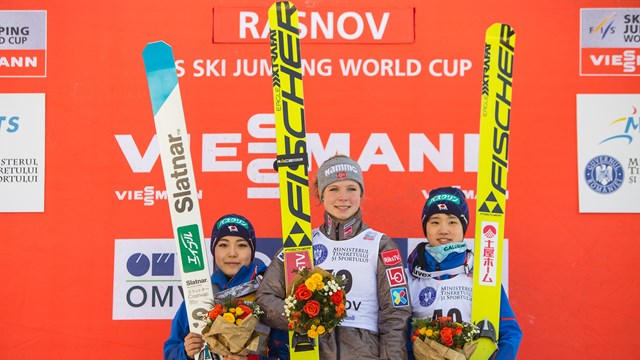 Марен Лундбю выиграла этап женского КМ в Рашнове (Румыния) с прыжками на 97 и 99 метров (259 очков), на втором и третьем местах японки Сара Таканаши (93 и 98 м, 249.8 очка) и Юки Ито (91 и 93.5 м, 238,5 очка). Лучшая из россиянок Ирина Аввакумова заняла 18-е место, Анастасия Баранникова 23-я.