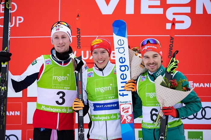 Во французском городке Шо-Нёв проходят соревнования КМ по лыжному двоеборью. В первом старте одержал свою первую победу в Кубке мира австриец Франц-Йозеф Рёрль с результатом 11:16.7, он же показал лучший результат в прыжковой части соревнования. На втором месте представитель Норвегии Эспен Бьорнстад с отставанием +9.4 (третий после прыжков). Бронзовую медаль получил Фабиан Риссле (Германия) с таким же отставанием +9.4 (результаты гонки определялись с помощью фотофиниша).